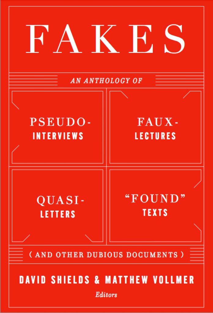 In our bureaucratized culture, we’re inundated by documents: itineraries, instruction manuals, permit forms, primers, letters of complaint, end-of-year reports, accidentally forwarded email, traffic updates, ad infinitum. David Shields and Matthew Vollmer, both writers and professors, have gathered forty short fictions that they’ve found to be seriously hilarious and irresistibly teachable (in both writing and literature courses): counterfeit texts that capture the barely suppressed frustration and yearning that percolate just below the surface of most official documents. The innovative stories collected in Fakes―including ones by Ron Carlson (a personal ad), Amy Hempel (a complaint to the parking department), Rick Moody (Works Cited), and Lydia Davis (a letter to a funeral parlor)―trace the increasingly blurry line between fact and fiction and exemplify a crucial form for the twenty-first century.